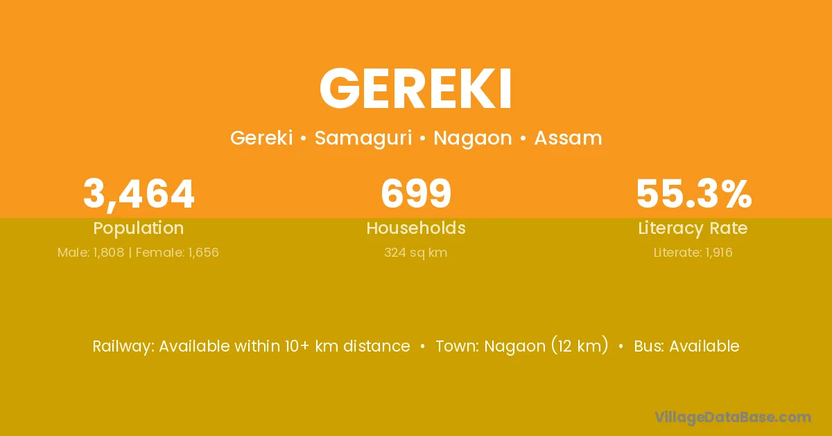 Biswanath is the nearest town to Gereki village for major economic activities