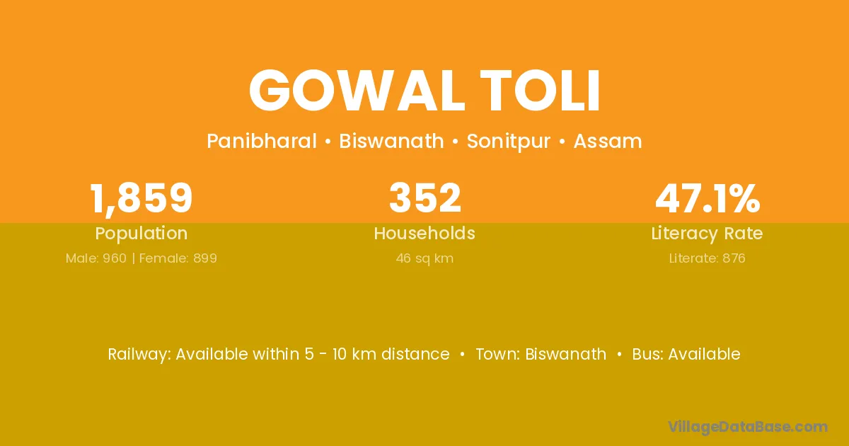 Biswanath is the nearest town to Gowal Toli village for major economic activities