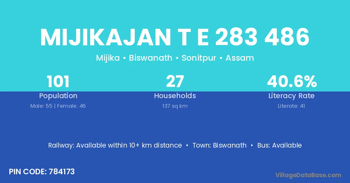 Biswanath is the nearest town to Mijikajan T E 283 486 village for major economic activities