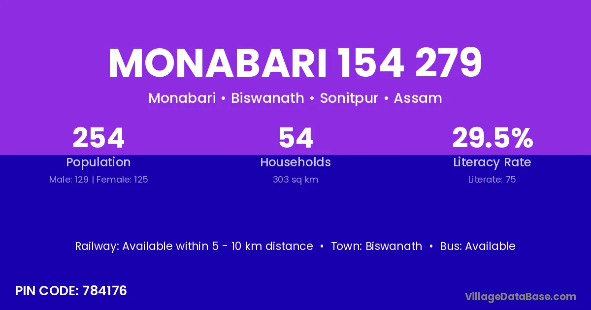 According to Census 2011 information, the village code of Monabari 154 279 village is 784176.