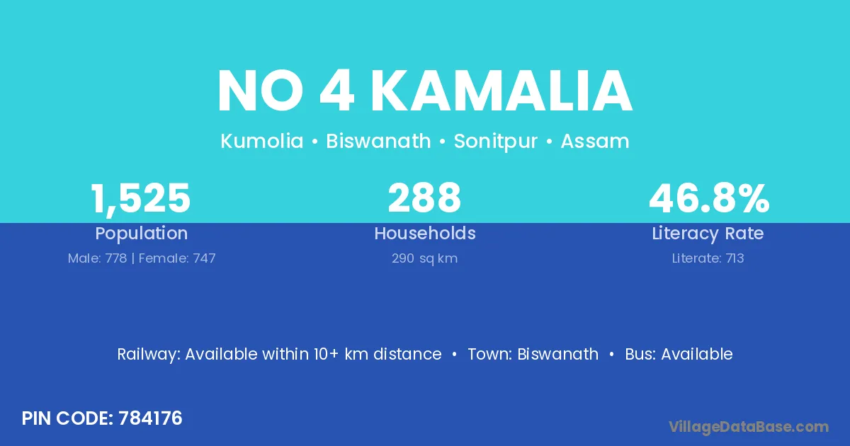 Biswanath is the nearest town to No 4 Kamalia village for major economic activities