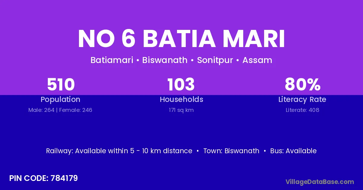 No 6 Batia Mari village has a total population of 510 people, of which 264 are males and 246 are females.