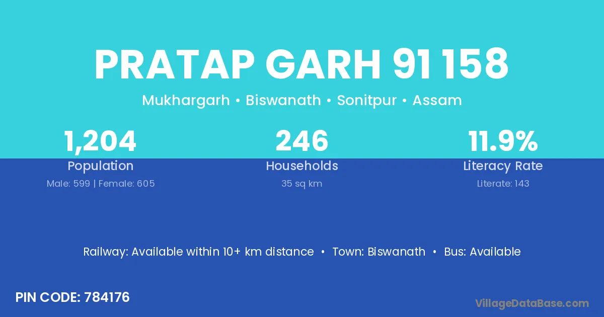 Pratap Garh 91 158 village is located in the Biswanath Subdivision of the Sonitpur district in Assam .