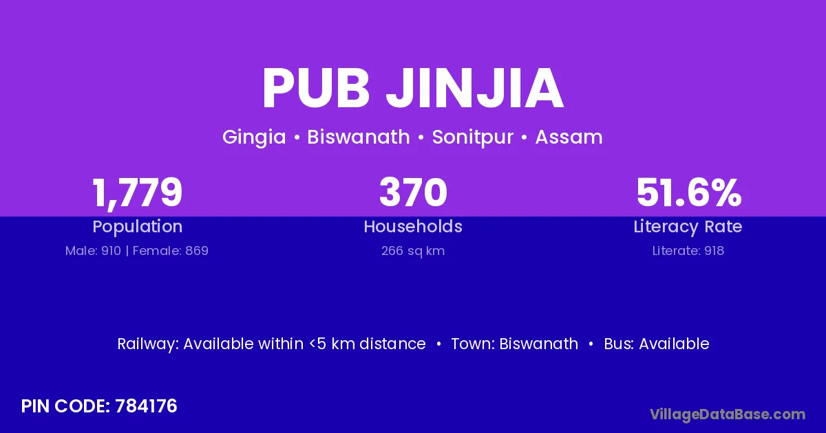 Biswanath is the nearest town to Pub Jinjia village for major economic activities