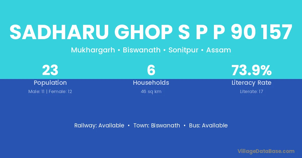 Biswanath is the nearest town to Sadharu Ghop S P P 90 157 village for major economic activities