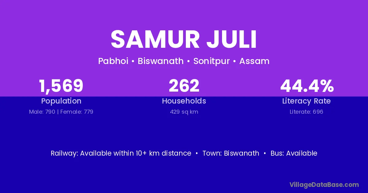 Biswanath is the nearest town to Samur Juli village for major economic activities