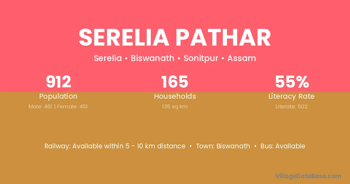Serelia Pathar village has a total population of 912 people, of which 461 are males and 451 are females.
