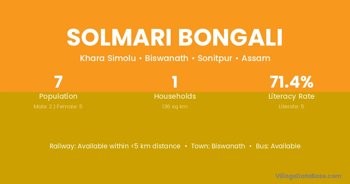 Biswanath is the nearest town to Solmari Bongali village for major economic activities