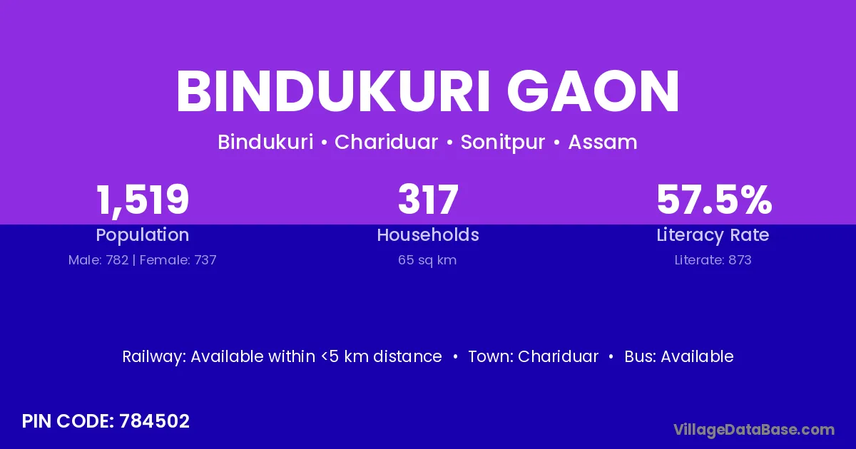 Chariduar is the nearest town to Bindukuri Gaon village for major economic activities