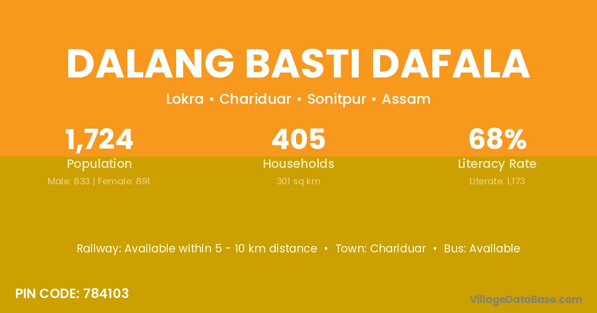 Dalang Basti Dafala village has a total population of 1,724 people, of which 833 are males and 891 are females.