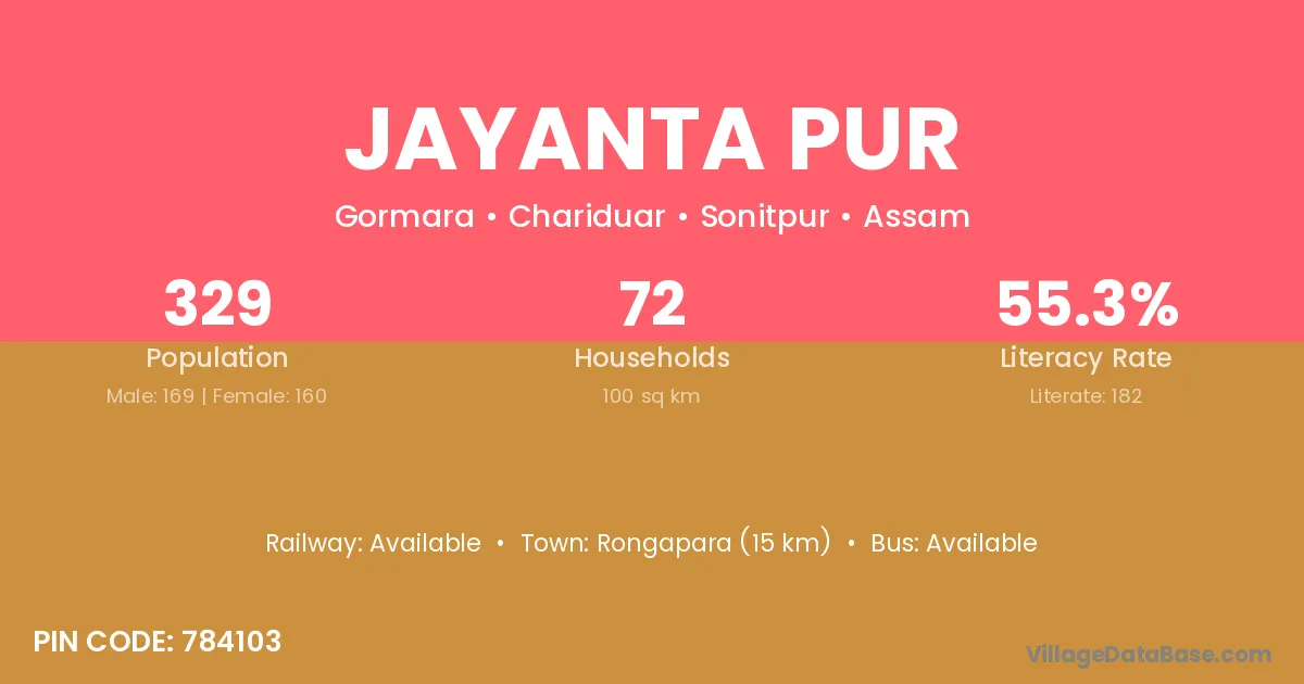 Rongapara (15 km) is the nearest town to Jayanta Pur village for major economic activities and is located approximately 15 km away.