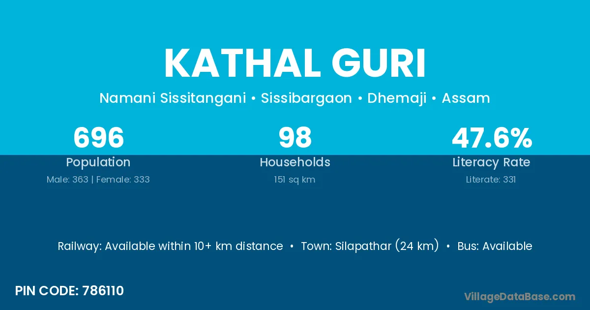 Kathal Guri village has a total population of 501 people, of which 255 are males and 246 are females.