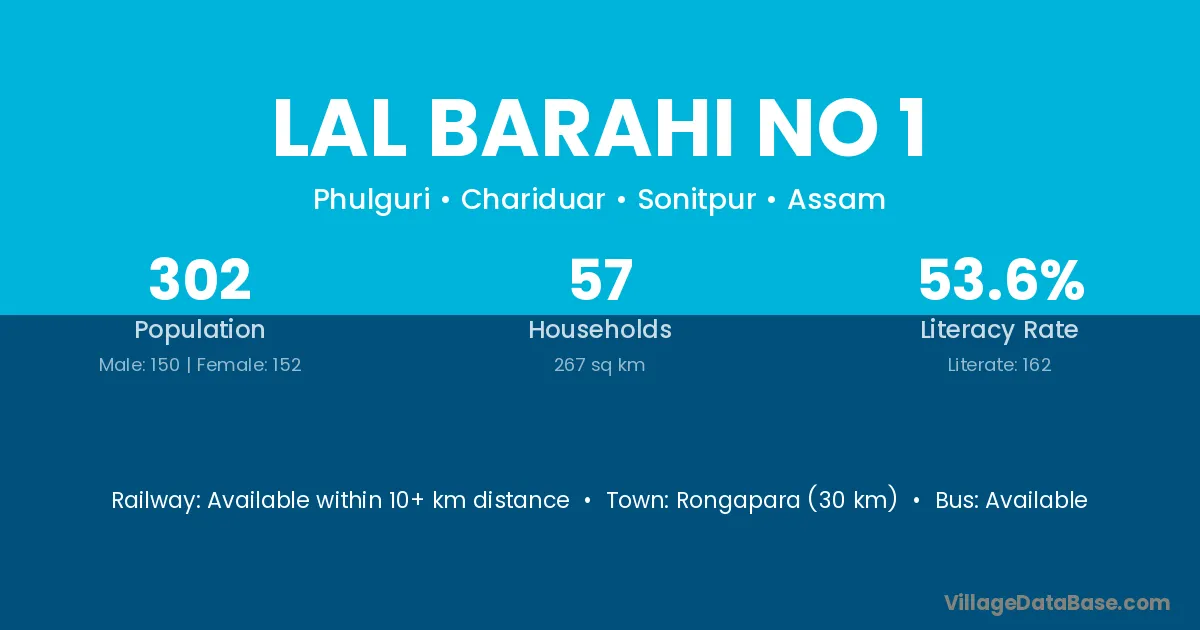 Lal Barahi No 1 village has a total population of 302 people, of which 150 are males and 152 are females.
