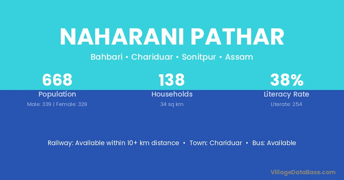 Naharani Pathar village has a total population of 668 people, of which 339 are males and 329 are females.