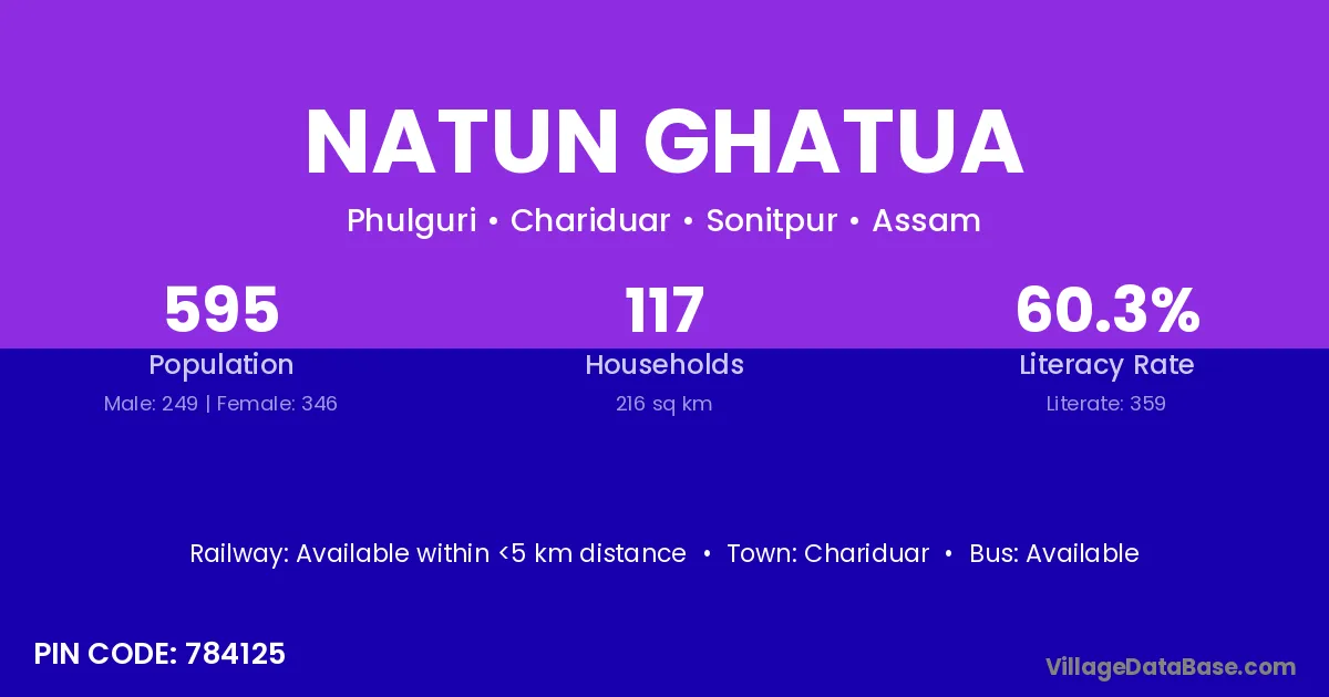 Natun Ghatua village has a total population of 595 people, of which 249 are males and 346 are females.
