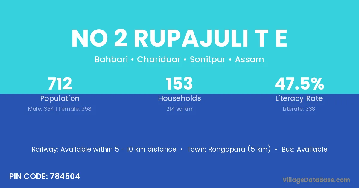 No 2 Rupajuli T E village has a total population of 712 people, of which 354 are males and 358 are females.