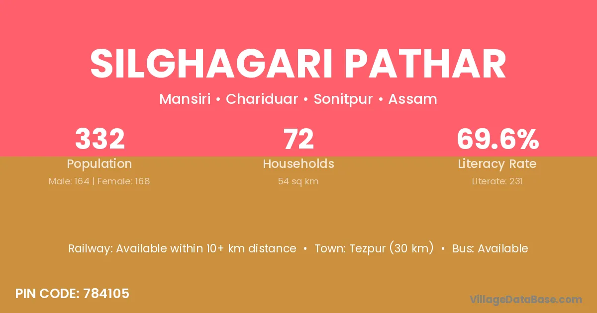 Tezpur (30 km) is the nearest town to Silghagari Pathar village for major economic activities and is located approximately 30 km away.