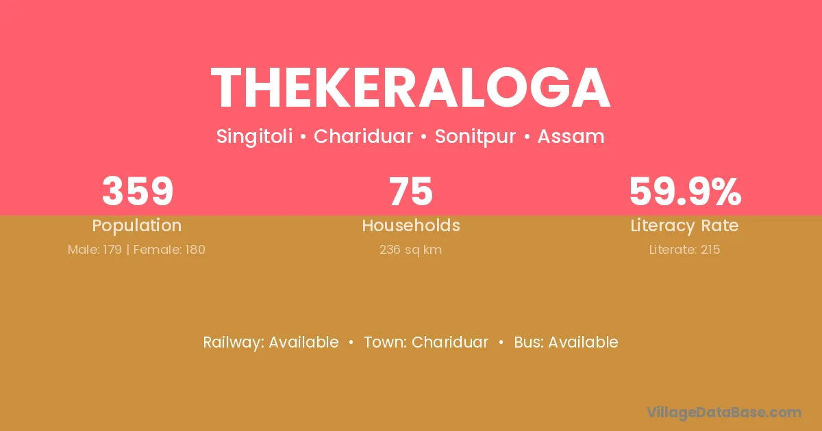 Thekeraloga village has a total population of 359 people, of which 179 are males and 180 are females.