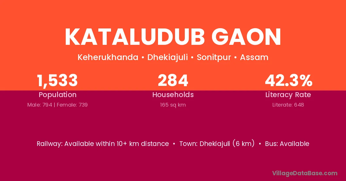 Kataludub Gaon village has a total population of 1,533 people, of which 794 are males and 739 are females.