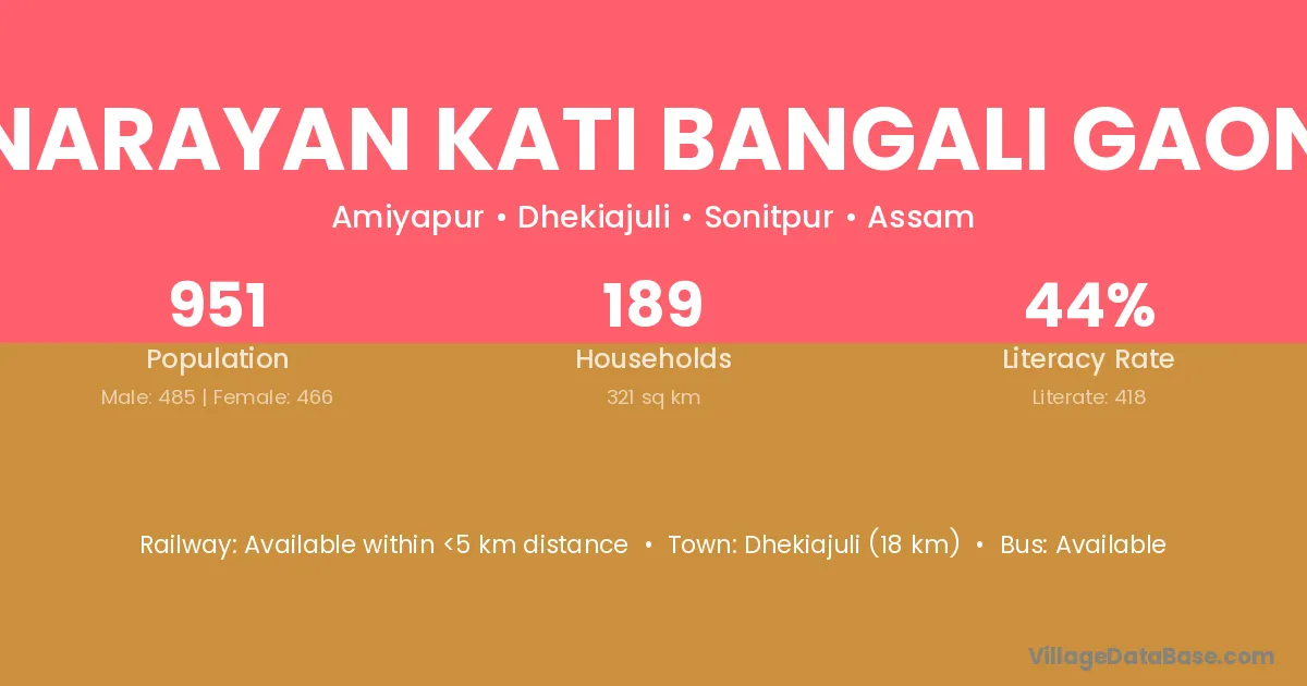 Narayan Kati Bangali Gaon village has a total population of 951 people, of which 485 are males and 466 are females.