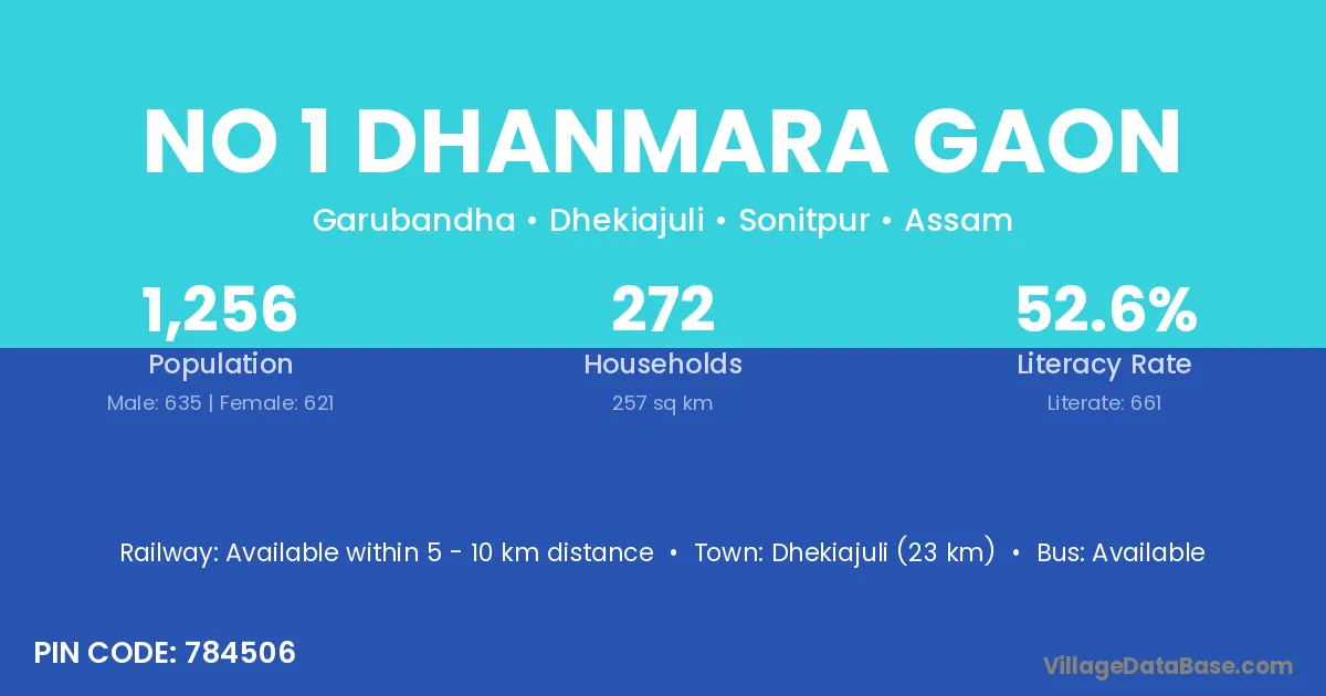 No 1 Dhanmara Gaon village has a total population of 1,256 people, of which 635 are males and 621 are females.