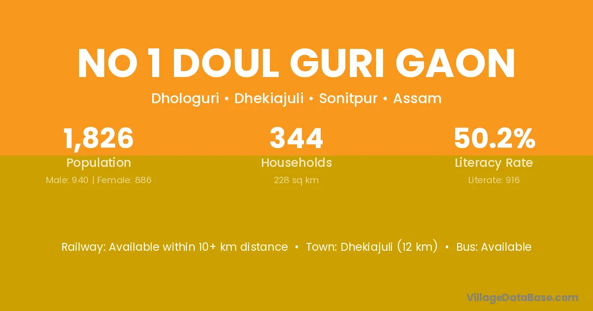 No 1 Doul Guri Gaon village has a total population of 1,826 people, of which 940 are males and 886 are females.