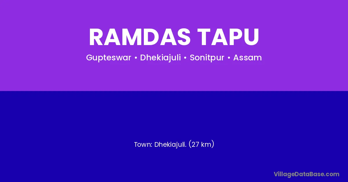Dhekiajuli. (27 km) is the nearest town to Ramdas Tapu village for major economic activities and is located approximately 27 km away.