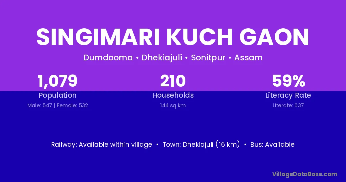 Singimari Kuch Gaon village has a total population of 1,079 people, of which 547 are males and 532 are females.