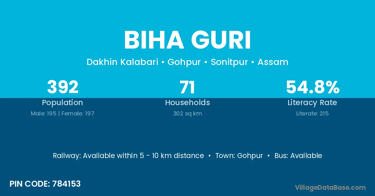 Gohpur is the nearest town to Biha Guri village for major economic activities