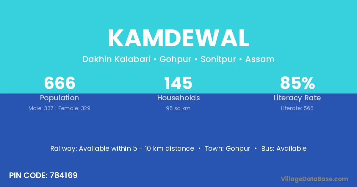 Gohpur is the nearest town to Kamdewal village for major economic activities