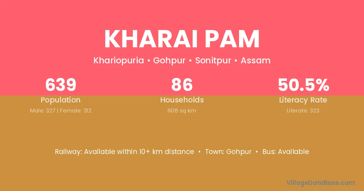 Kharai Pam village has a total population of 639 people, of which 327 are males and 312 are females.