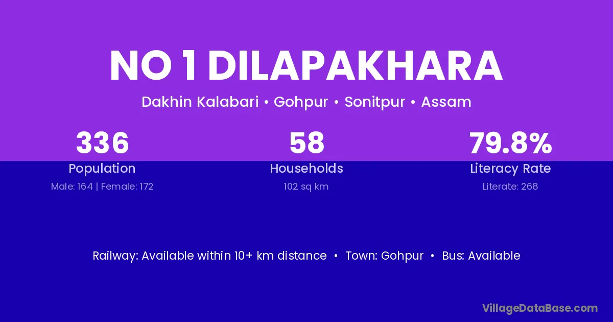 No 1 Dilapakhara village has a total population of 336 people, of which 164 are males and 172 are females.