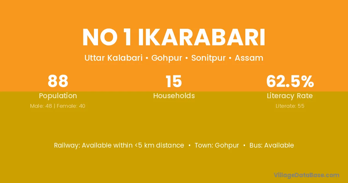 No 1 Ikarabari village has a total population of 88 people, of which 48 are males and 40 are females.