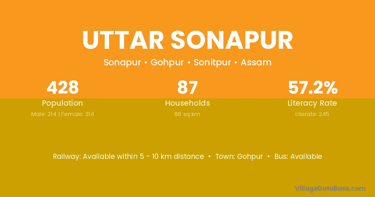Uttar Sonapur village has a total population of 428 people, of which 214 are males and 214 are females.