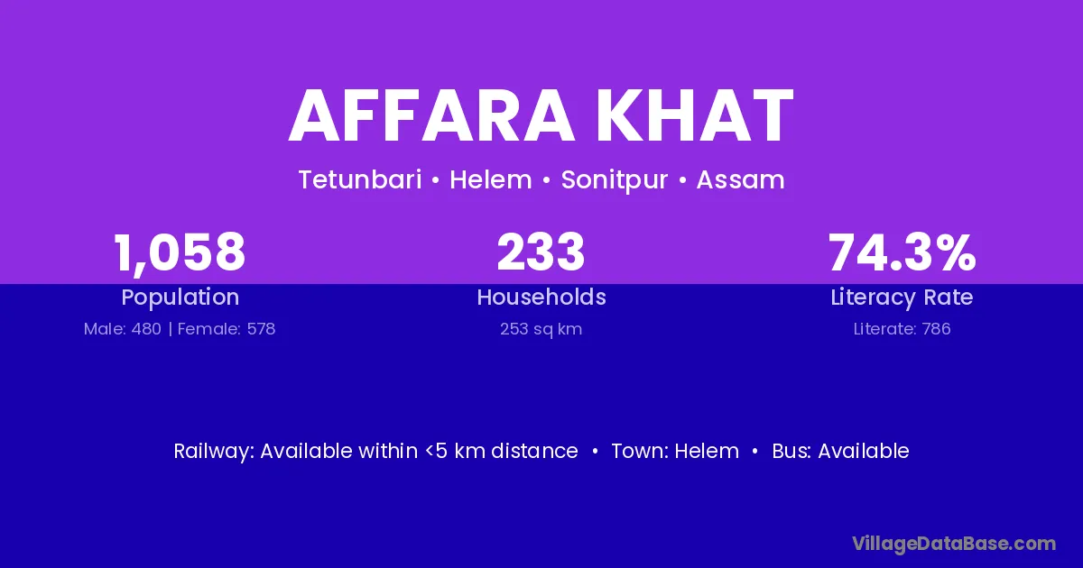 Affara Khat village has a total population of 1,058 people, of which 480 are males and 578 are females.