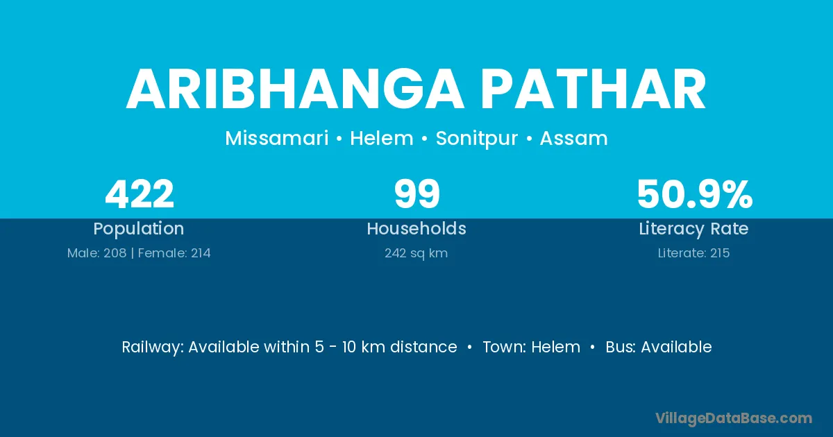 Aribhanga Pathar village has a total population of 422 people, of which 208 are males and 214 are females.