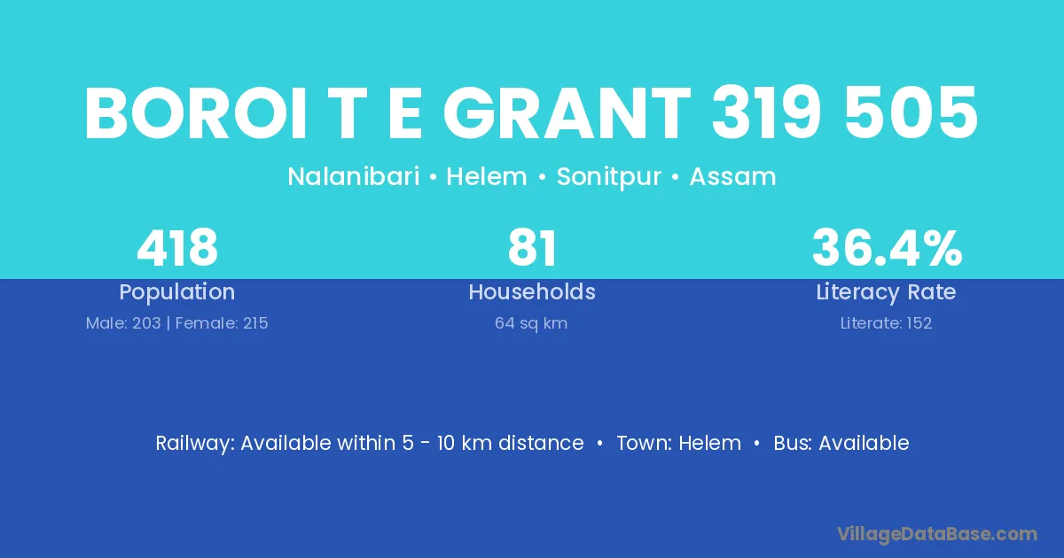 Boroi T E Grant 319 505 village has a total population of 418 people, of which 203 are males and 215 are females.