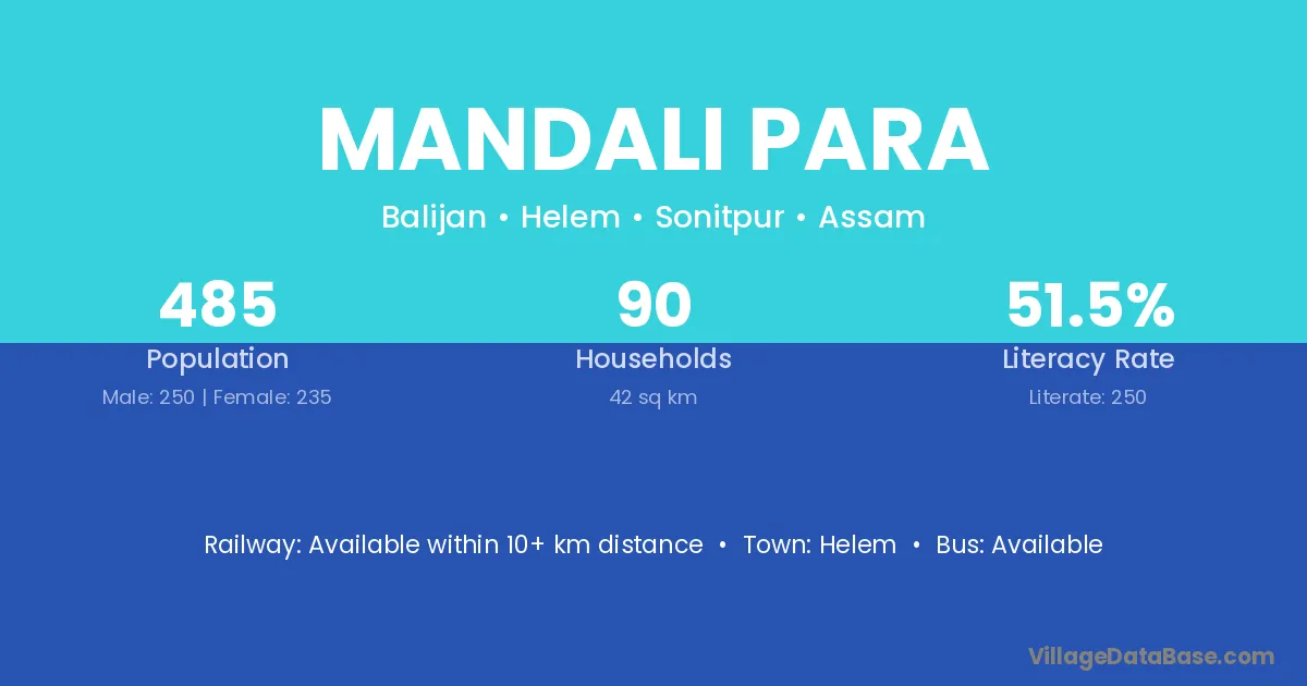 Mandali Para village has a total population of 485 people, of which 250 are males and 235 are females.