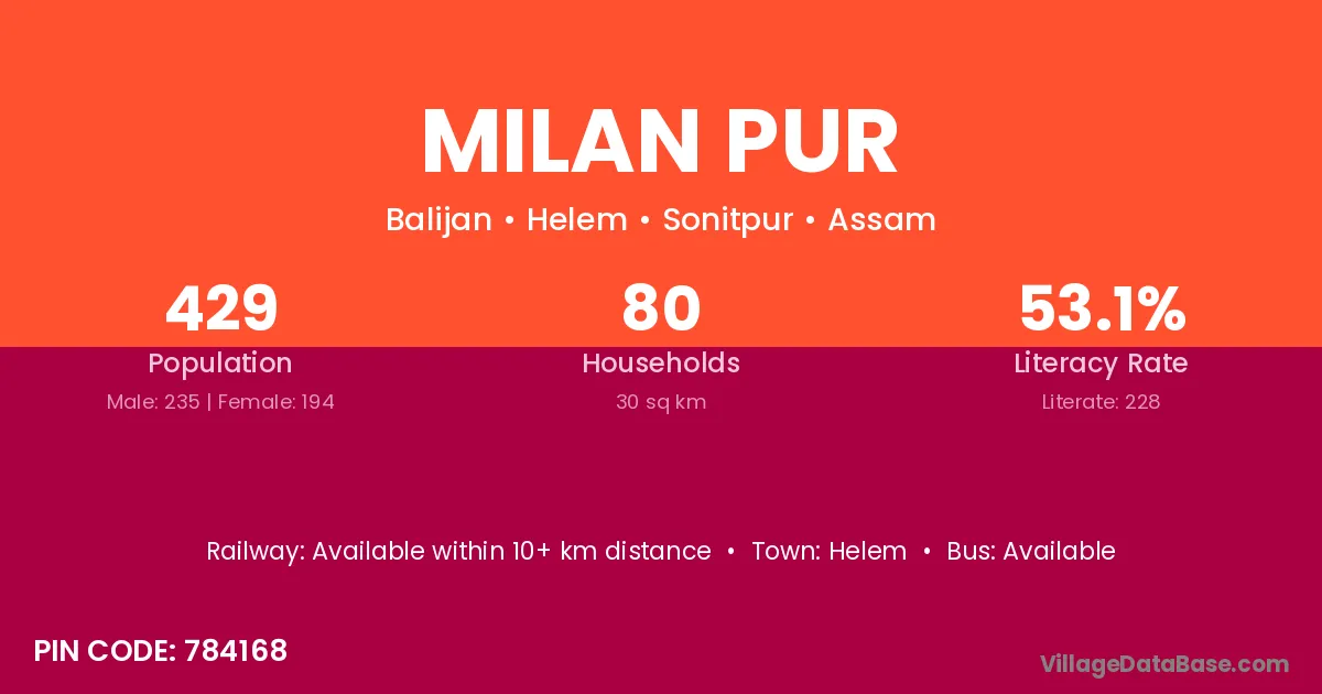 Milan Pur village is located in the Helem Subdivision of the Sonitpur district in Assam .