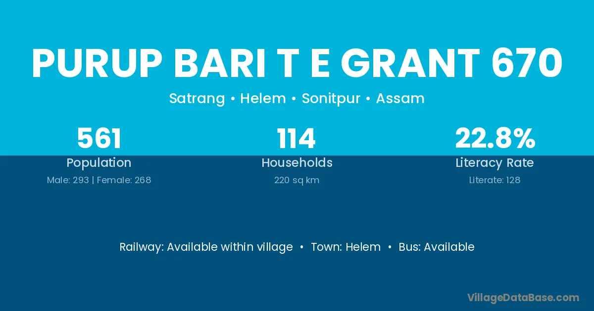 Purup Bari T E Grant 670 village has a total population of 561 people, of which 293 are males and 268 are females.