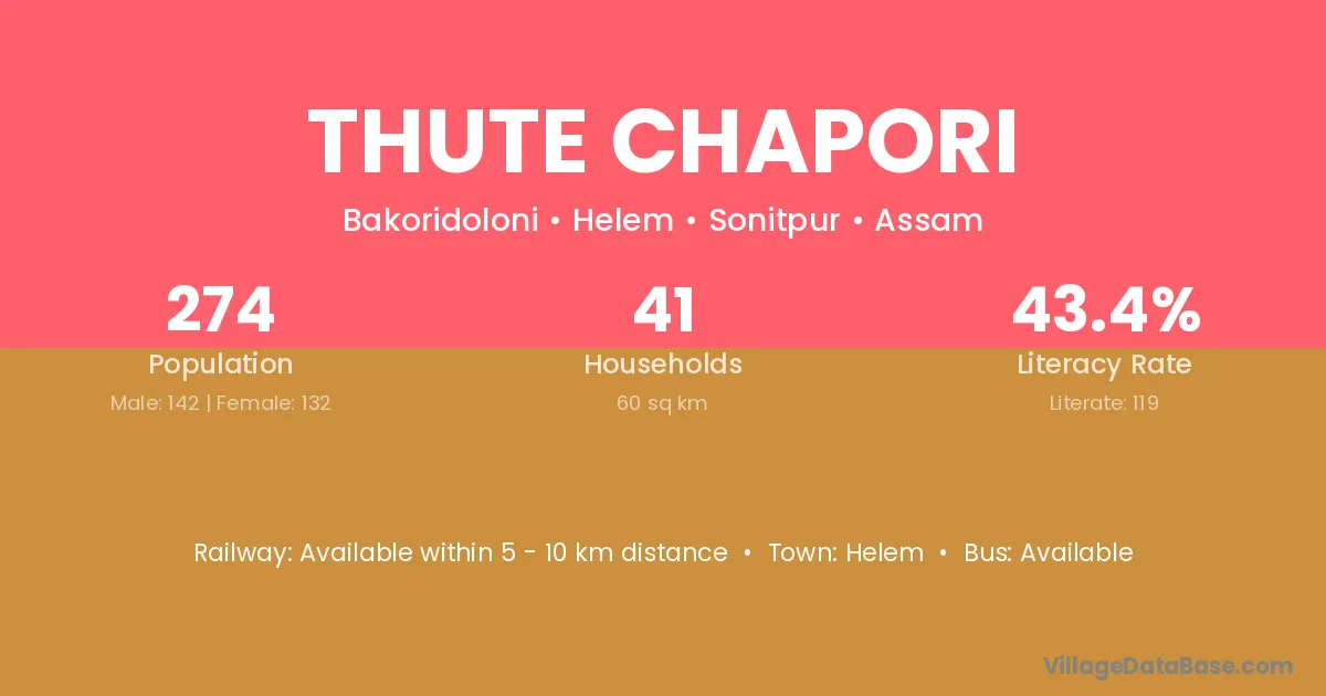Thute Chapori village has a total population of 274 people, of which 142 are males and 132 are females.