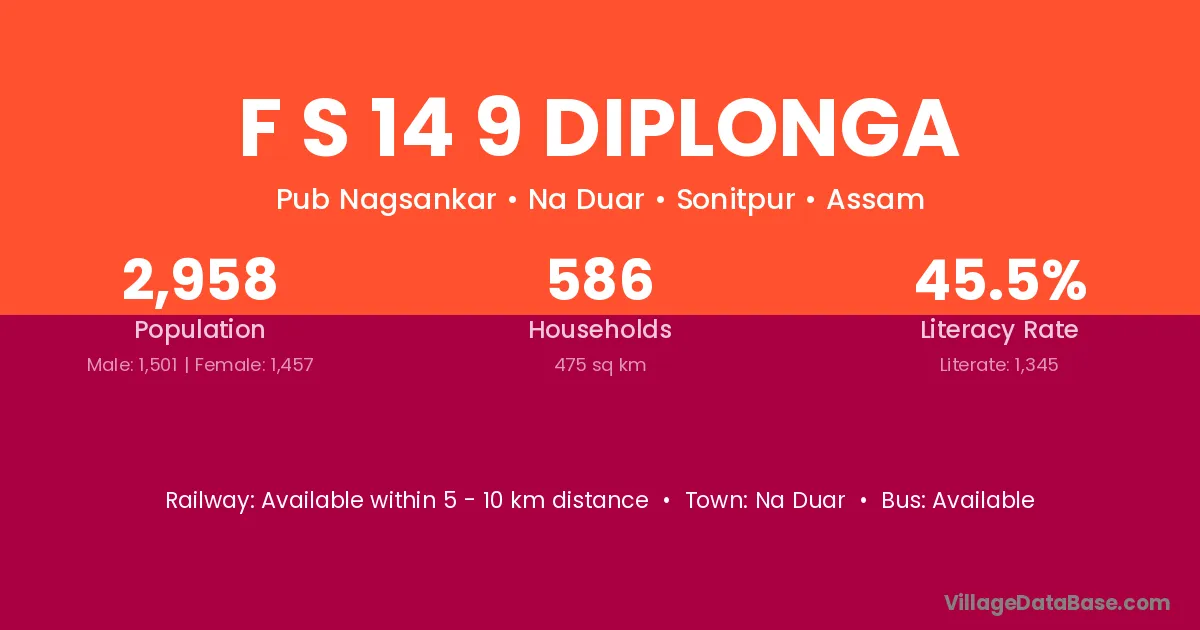 F S 14 9 Diplonga village is located in the Na Duar Subdivision of the Sonitpur district in Assam .