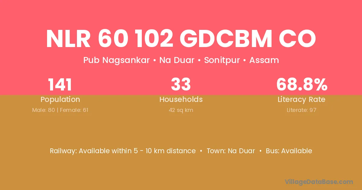 Nlr 60 102 Gdcbm Co village has a total population of 141 people, of which 80 are males and 61 are females.