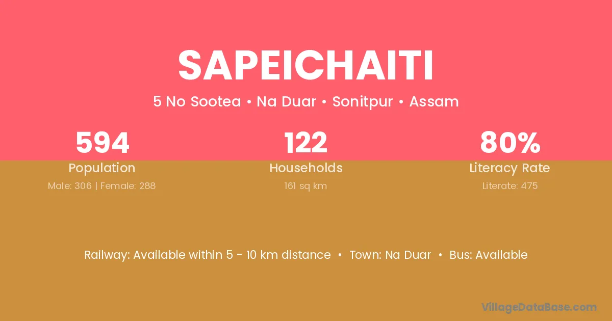 Sapeichaiti village has a total population of 594 people, of which 306 are males and 288 are females.