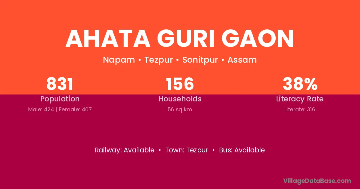 Ahata Guri Gaon village has a total population of 831 people, of which 424 are males and 407 are females.