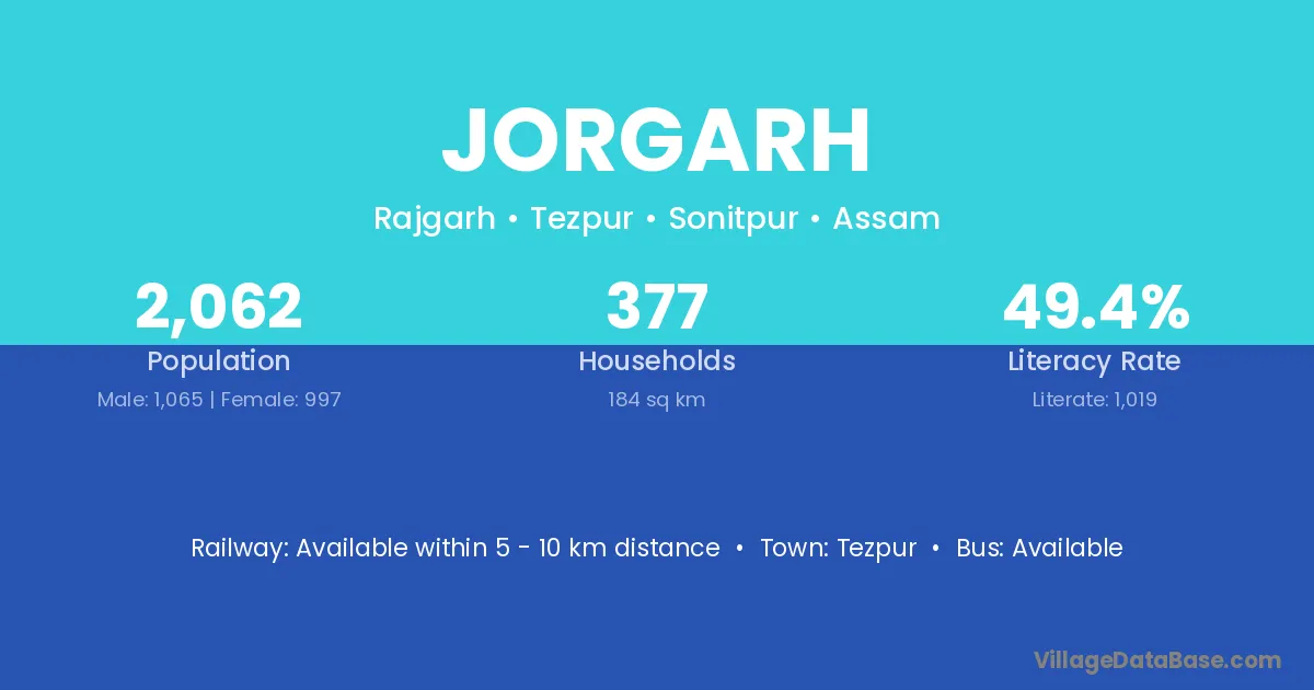 Tezpur is the nearest town to Jorgarh village for major economic activities