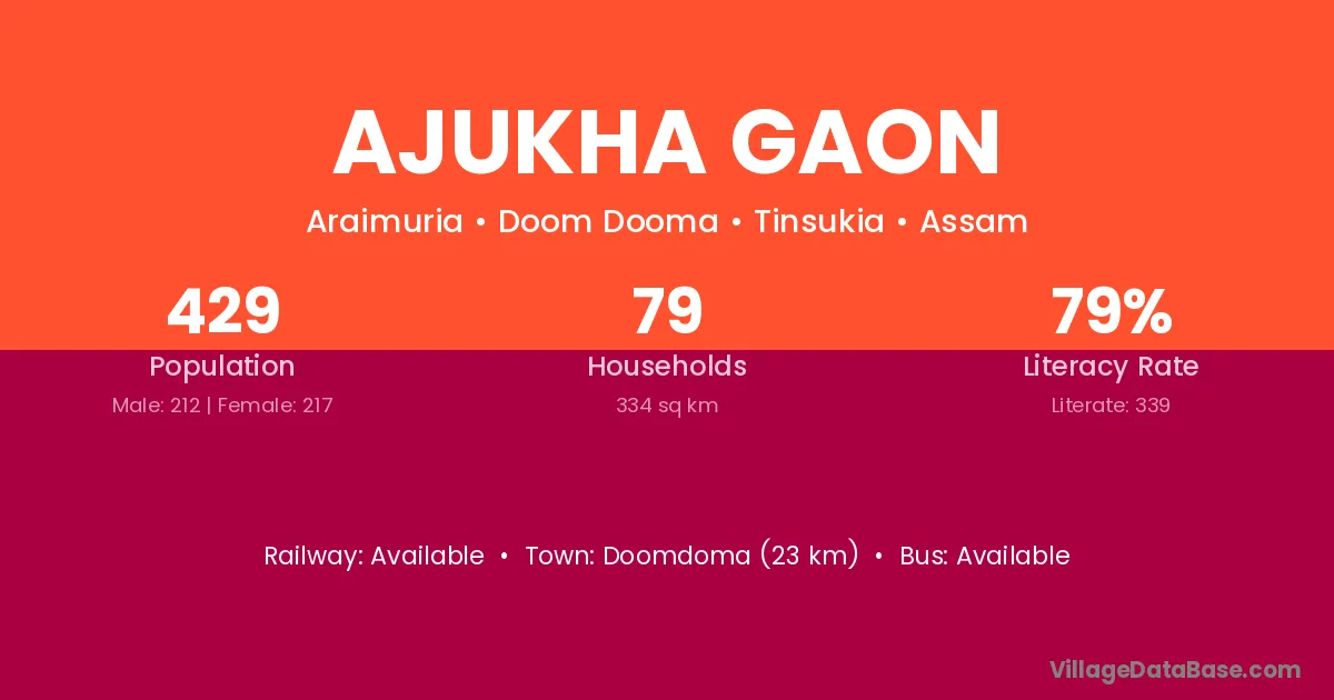 Ajukha Gaon village has a total population of 429 people, of which 212 are males and 217 are females.