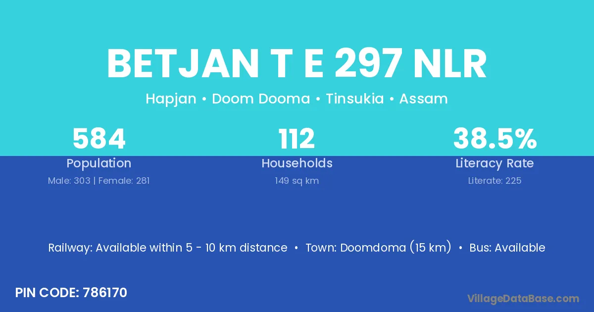 Betjan T E 297 Nlr village has a total population of 584 people, of which 303 are males and 281 are females.