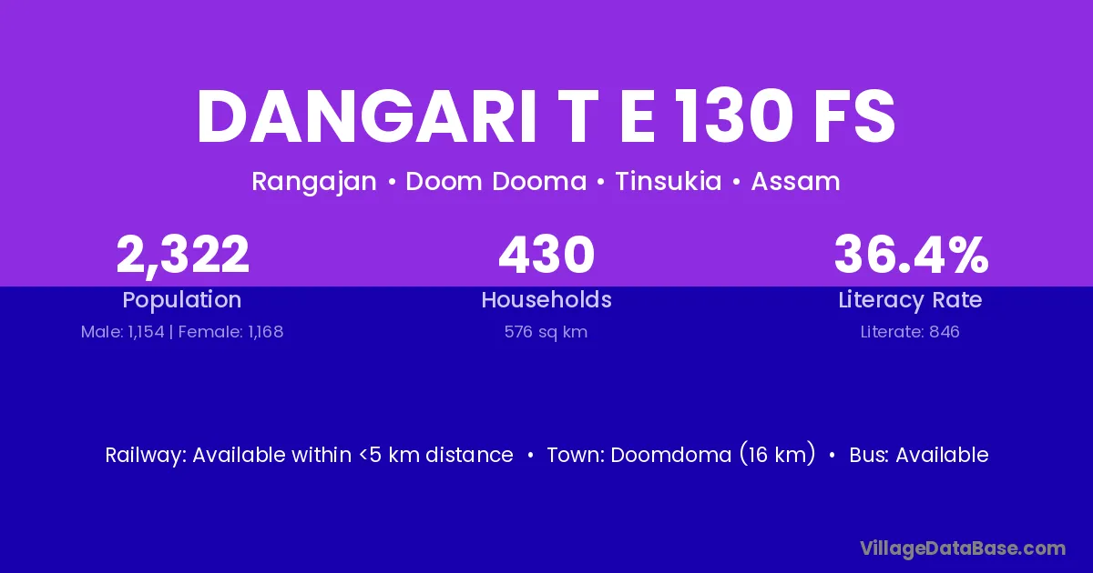 Dangari T E 130 Fs village is located in the Doom Dooma Subdivision of the Tinsukia district in Assam .