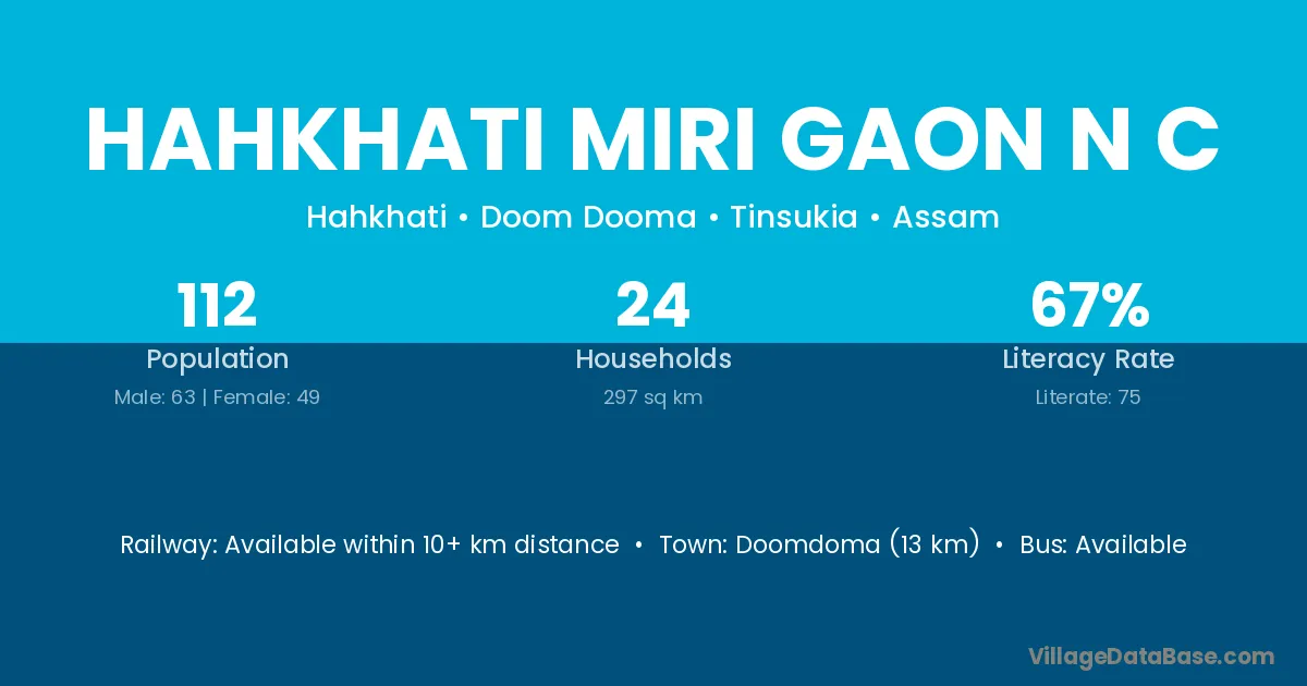 Hahkhati Miri Gaon N C village has a total population of 112 people, of which 63 are males and 49 are females.
